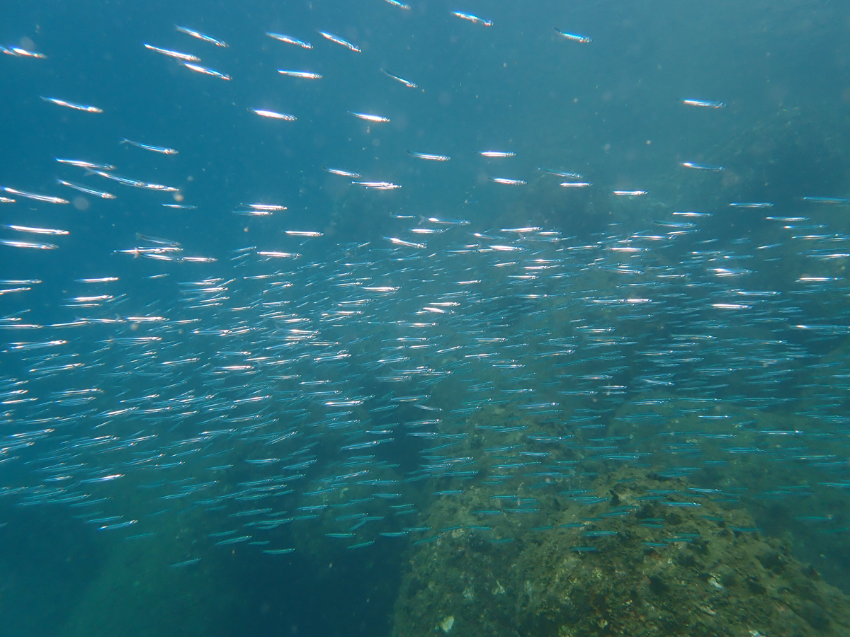 テトラポット付近にはネンブツダイやアオリイカの幼魚の群れも見れています