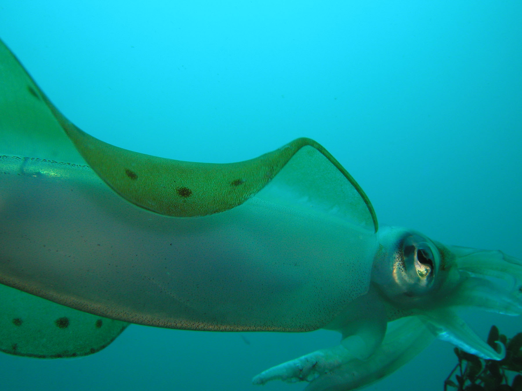 ミジン近くに1匹 アオリイカの産卵床前で1匹