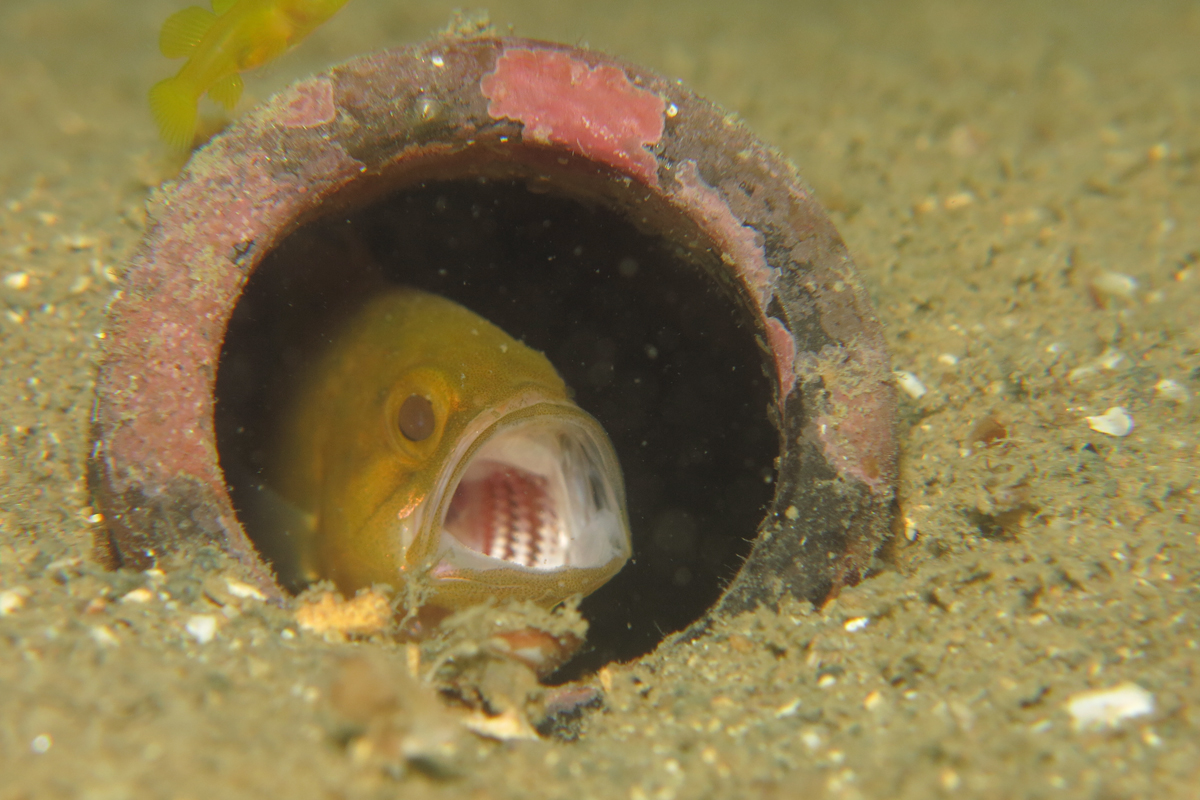 また別の場所でクロイシモチとミジンのペアを発見