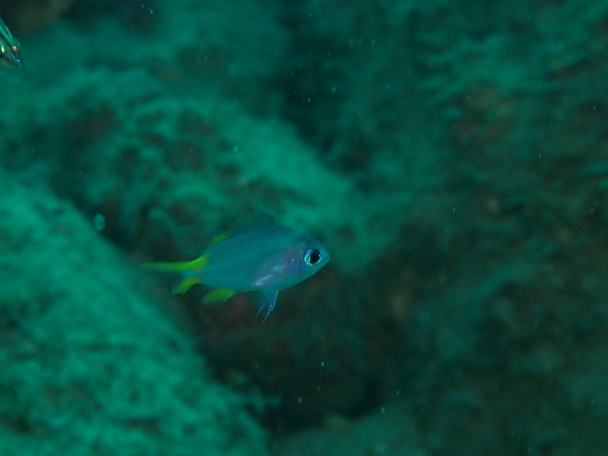 小杭崎ではアルファスズメダイの幼魚と思われる個体が登場