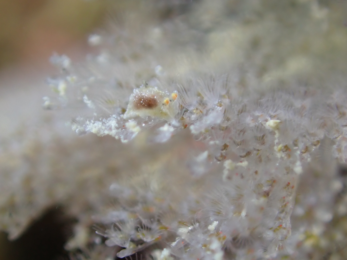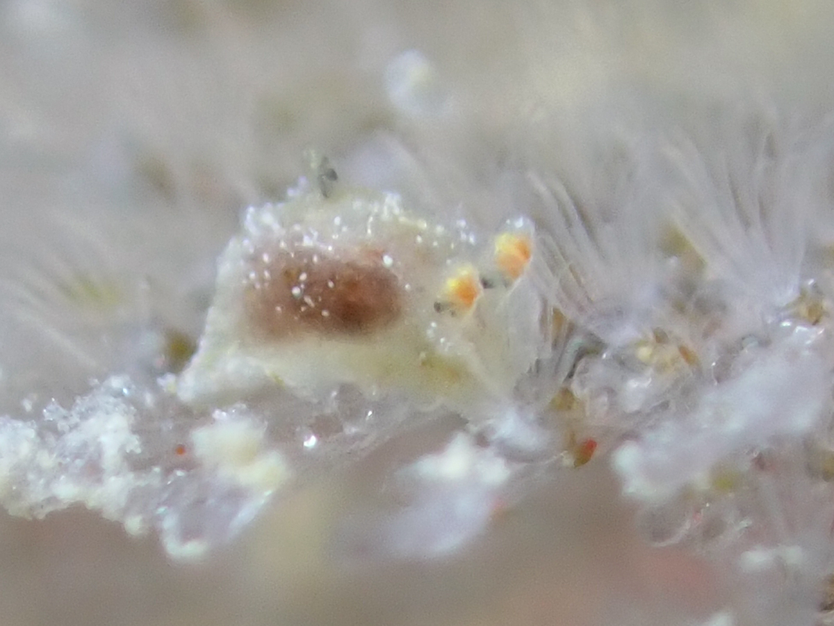 コケムシに付く極小のウミウシを発見
