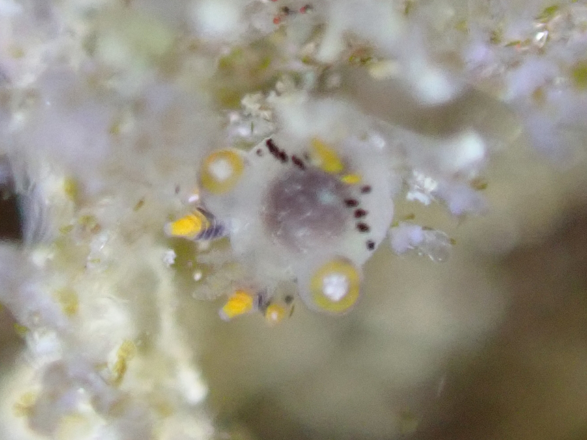 近い仲間のツノザヤウミウシの極小サイズを発見