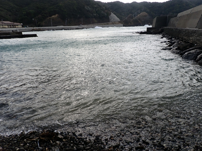 防波堤に囲われたビーチだけは表面上は波も少なく潜れるレベル