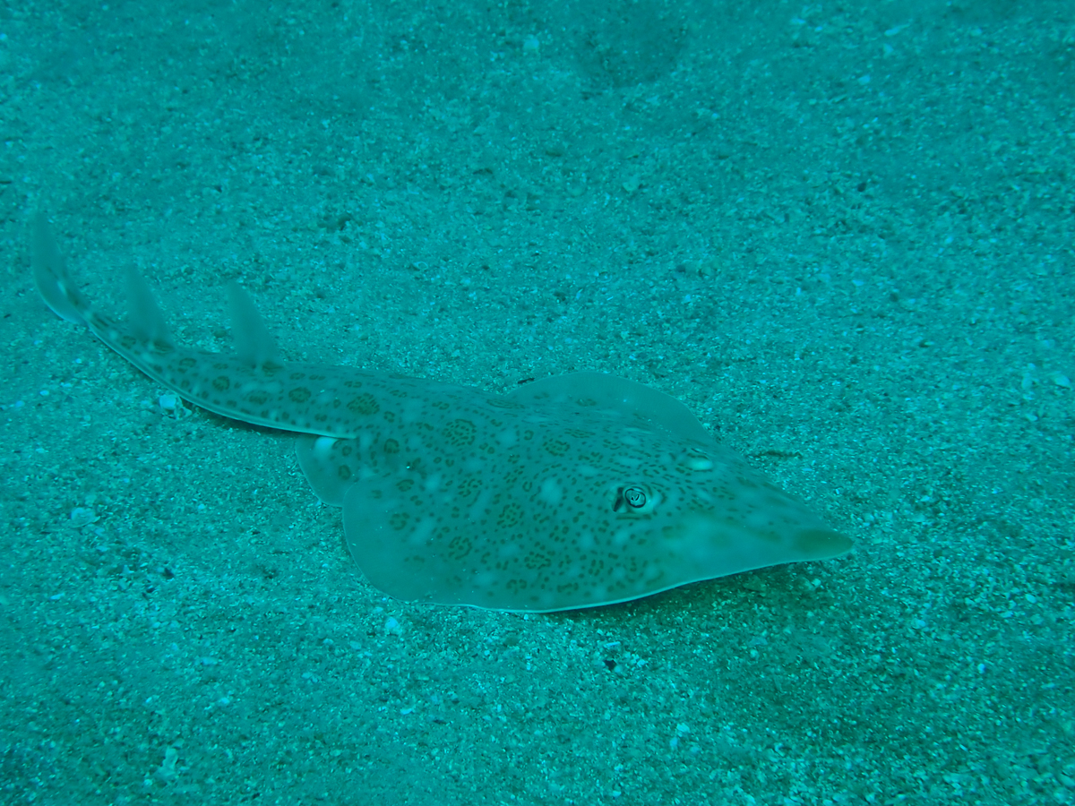 ミジン畑の砂地で今日はサカタザメの小さめの個体を発見